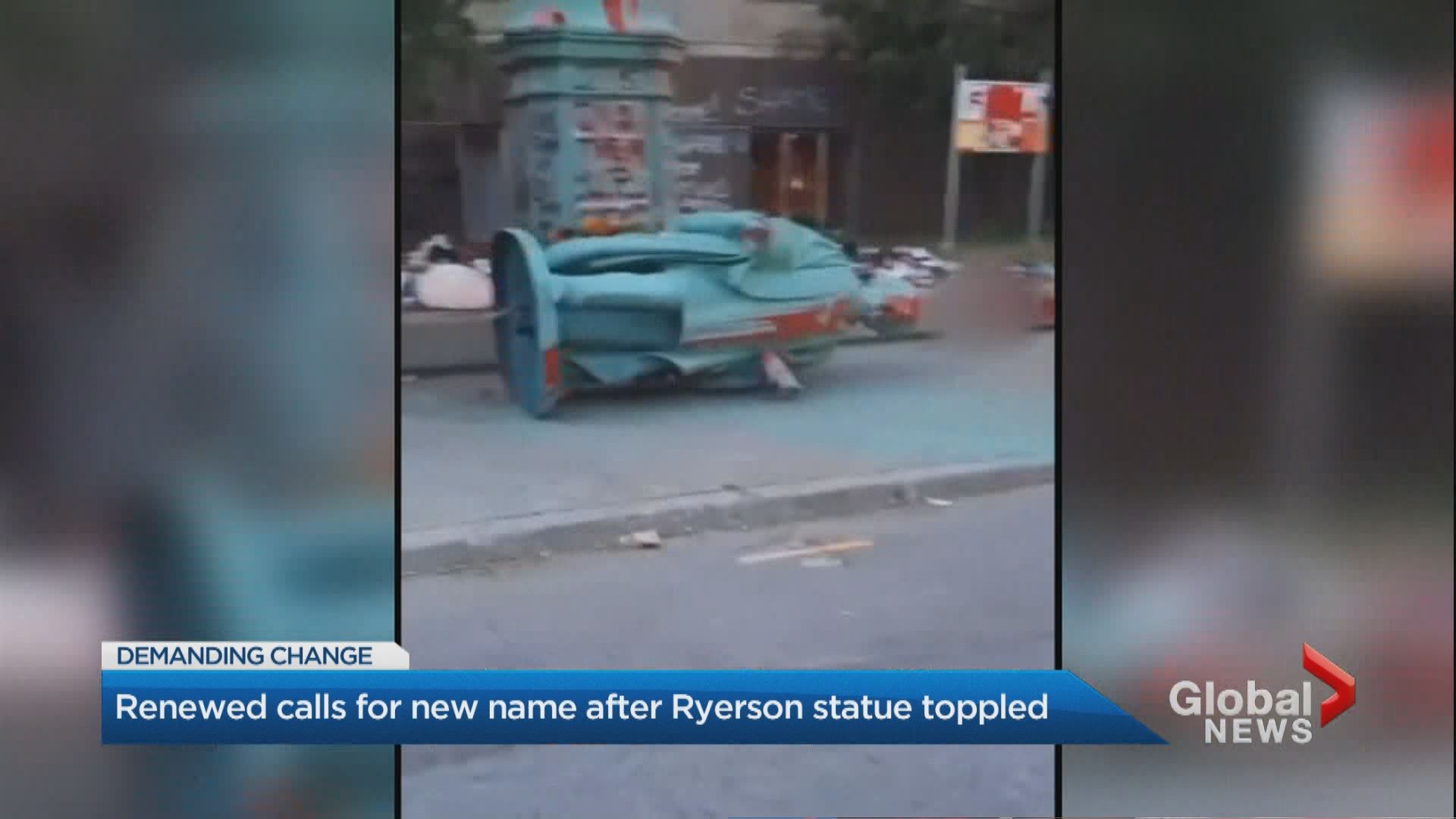 Ryerson university to be renamed. A protester swings a hammer in an attempt to remove the head of the egerton ryerson statue in toronto on june 6, 2021. Calls are growing to rename ryerson university, because its namesake egerton ryerson was a key architect. A statue of ryerson university namesake egerton ryerson was toppled by protesters over the weekend. Protestors brought down a statue of egerton ryerson at the toronto university's campus sunday.
