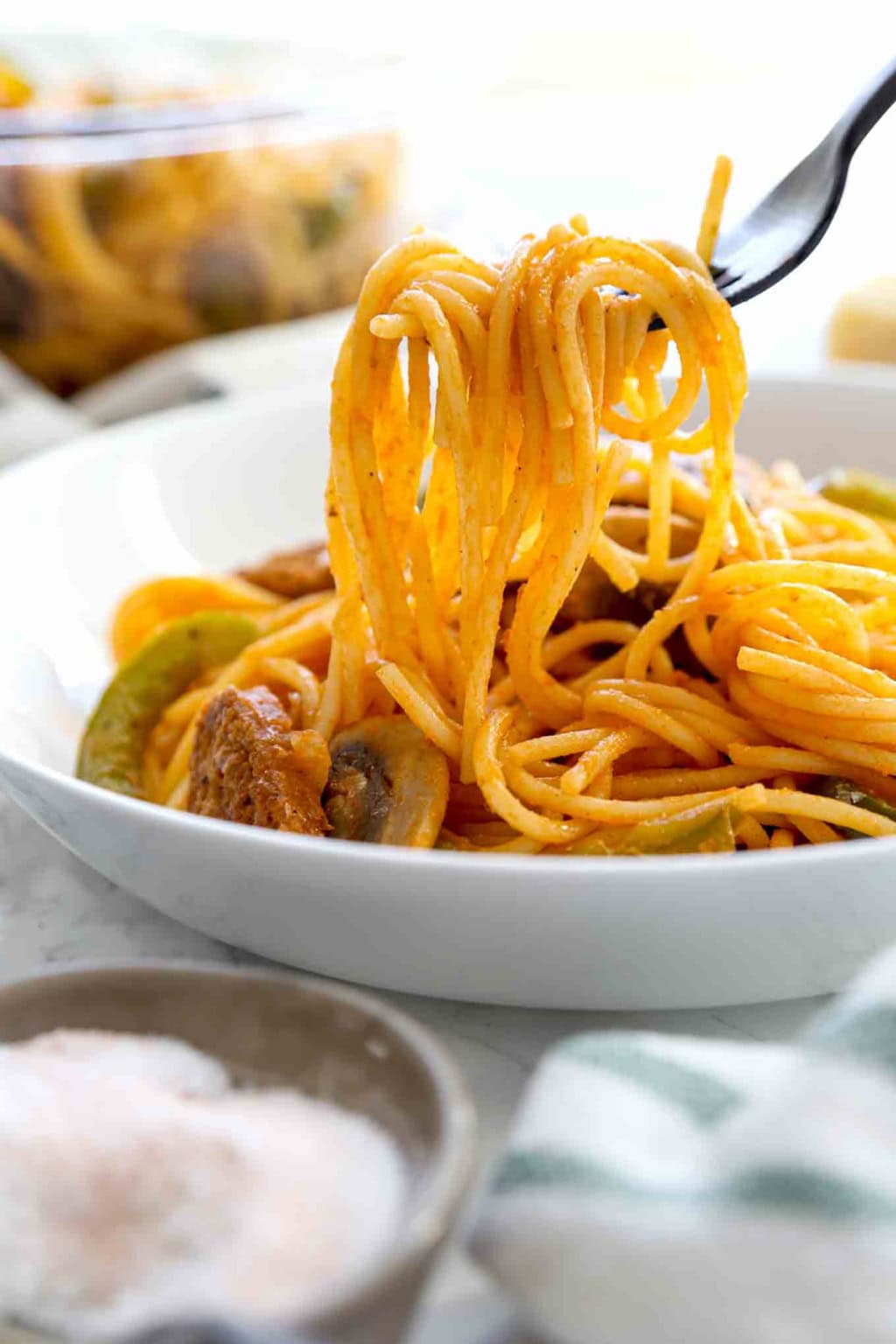 This dish is very special for me since it reminds me of my childhood. Spaghetti neapolitan is a dish in cooking mama. It's super comforting, relatively inexpensive to make! It's tomato sauce pasta made with ketchup and vegan sausage. Actually 'spaghetti napolitan' is a japanese dish.